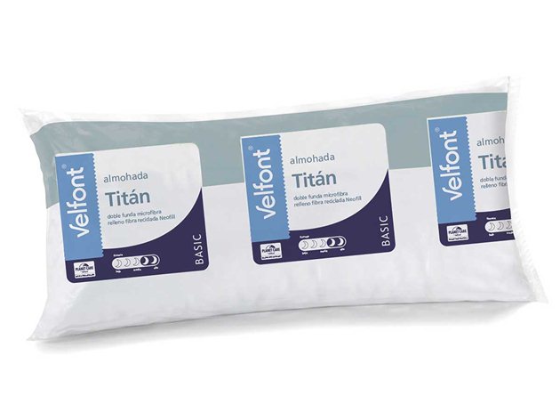 La almohada Titán de Velfont es una almohada de doble funda con cremallera, confeccionada con tejido microfibra de tacto seda extrasuave con un bonito diseño a cuadros. Su relleno de fibra hueca conjugada reciclada Neofill cuida el medio ambiente aportando un equilibrio entre volumen y firmeza. Tiene un tacto suave con gran capacidad de recuperación.