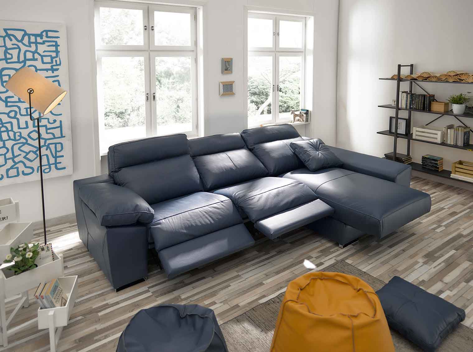 Sistemas: Mecanismo relax (salida 51 cm), bastidor metálico con muelle zig-zag. Chaiselongue motorizado (salida 35 cm).
