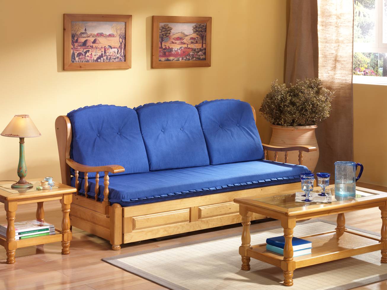 * Sofá Nido Provenzal de madera de pino maciza.